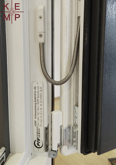 - KEMP SECU 1:Eckpunkte des Fensters mit Sicherheitszapfen, inkl. abschließbarer Fensterolive - KEMP SECU 2: Alle Verschlusspunkte mit Sicherheitszapfen, inkl. abschließbarer Fensterolive - RC2: nach DIN EN 1627 geprüftes Element inkl. P4A-Verglasung und Randverbundverklebung